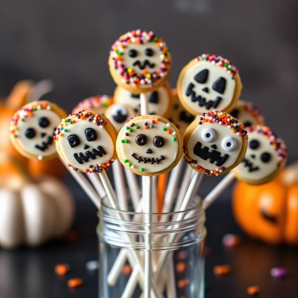4. Sprinkle Spectacle: While the chocolate is still wet, shower your cookie pops with Halloween-themed sprinkles for an explosion of color and texture.