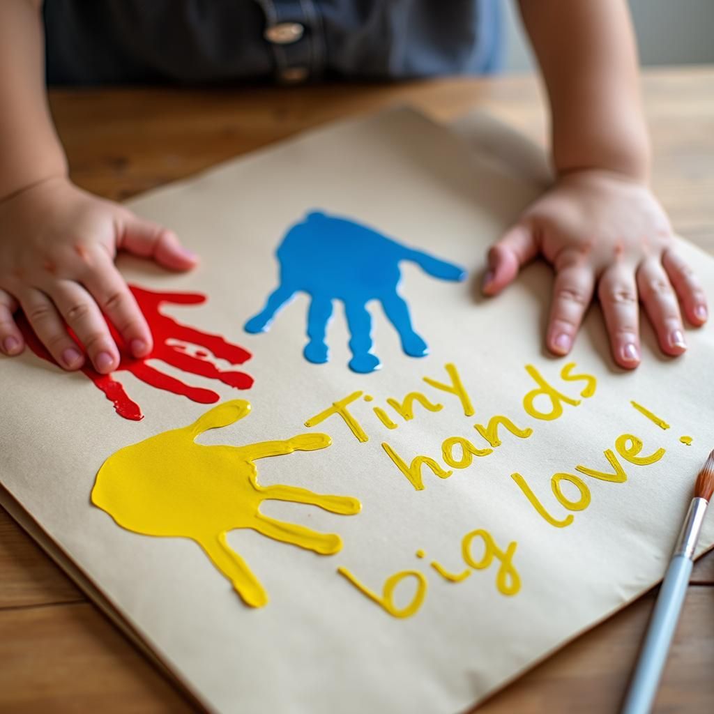 - Once dry, write a simple message like, ‘Hands that love you’ or ‘Tiny hands, big love!’