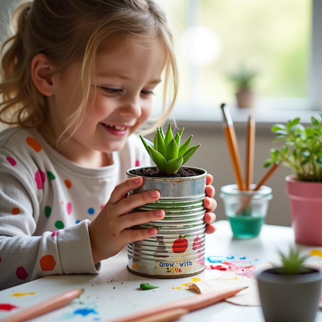 Instead of buying a terracotta pot, up-cycle an old jar or tin can! This project is a fun way for children to give a gift that keeps on growing (literally) and doesn’t cost a thing if you use items from around the house.