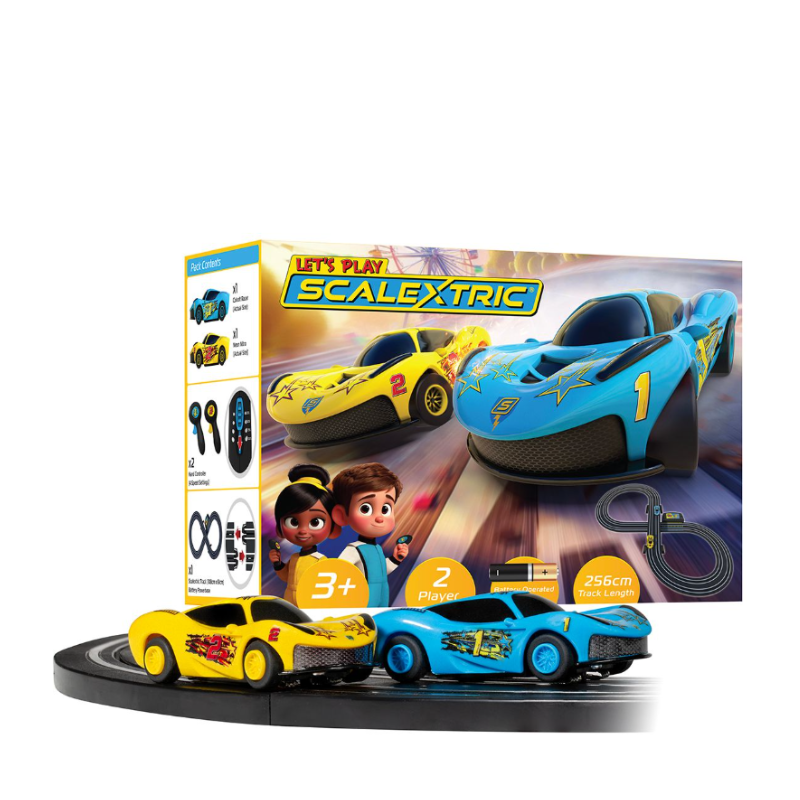 Let’s Play Scalextric is an ideal introduction to slot car racing for younger children. Designed with simplicity and fun in mind, this set includes everything needed to start racing straight away.